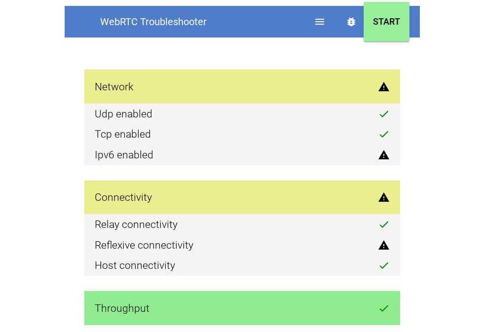 To assess how videoconferencing works at the edge and through the network, the Probe uses the WebRTC Troubleshooter web app provided by webrtc.org, running the test inside a Chrome Browser.